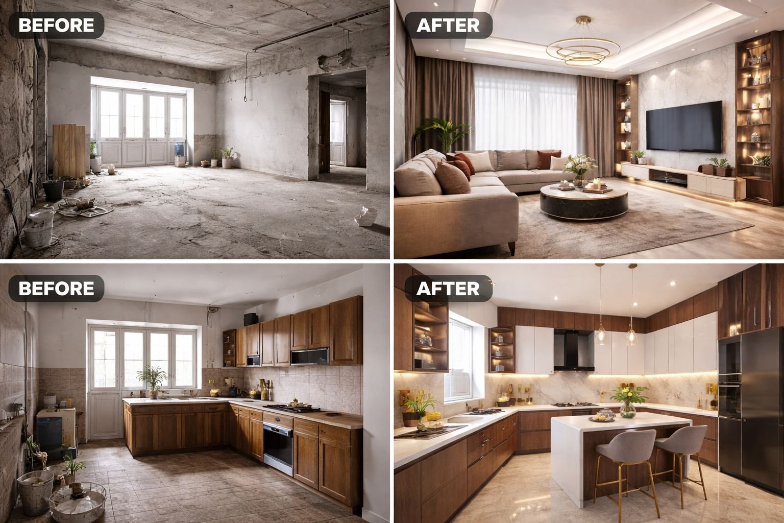Whether you need a modern apartment makeover, a luxury villa interior, or a budget-friendly design solution, our team ensures every detail is thoughtfully planned and executed.